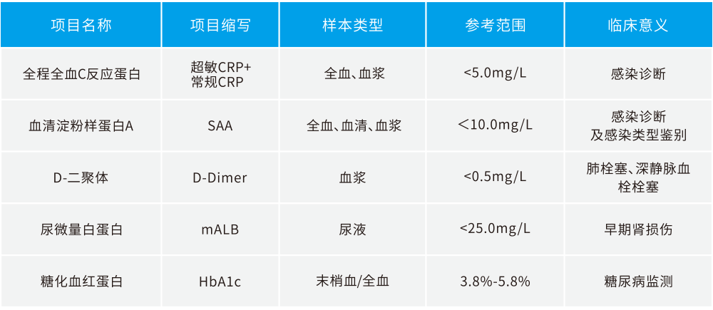 hsCRP+CRP,SAA,mALB,HbA1c,D-Dimer等