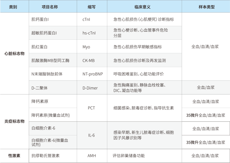 ●全血/血浆/血清样本检测,样本用量低至35μL